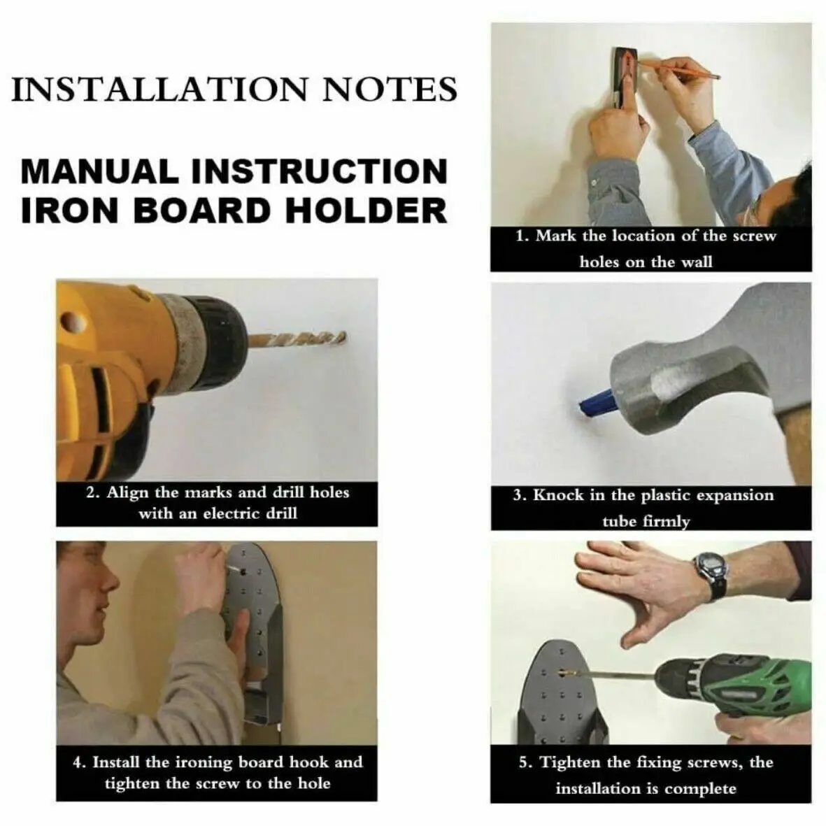 1.Ironing board storage is simple to achieve by mounting this rack directly to your wall.
